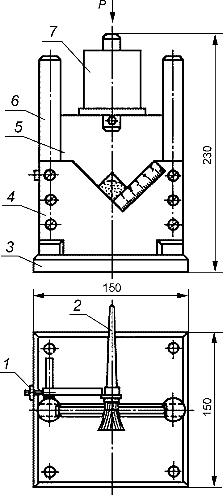 При помощи упора закрепляют кисть в приспособлении и прикладывают статическую нагрузку P: