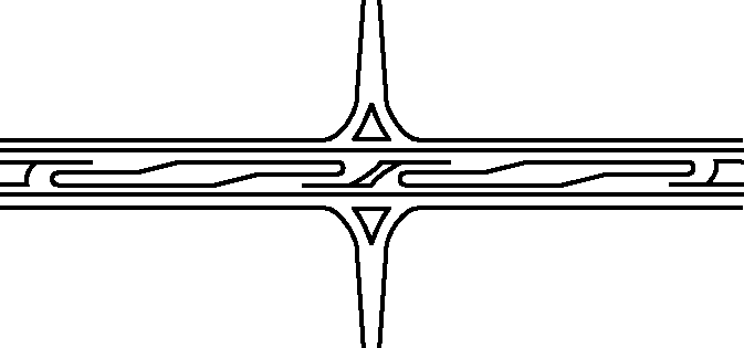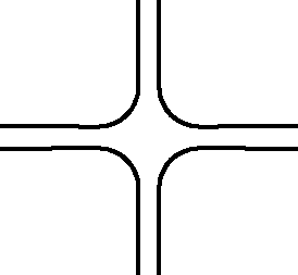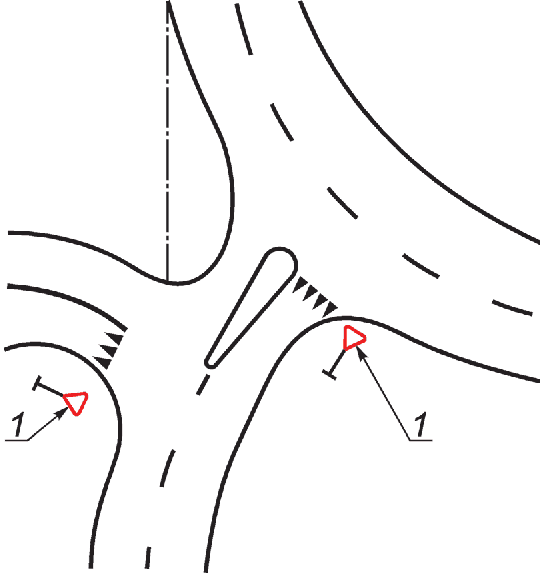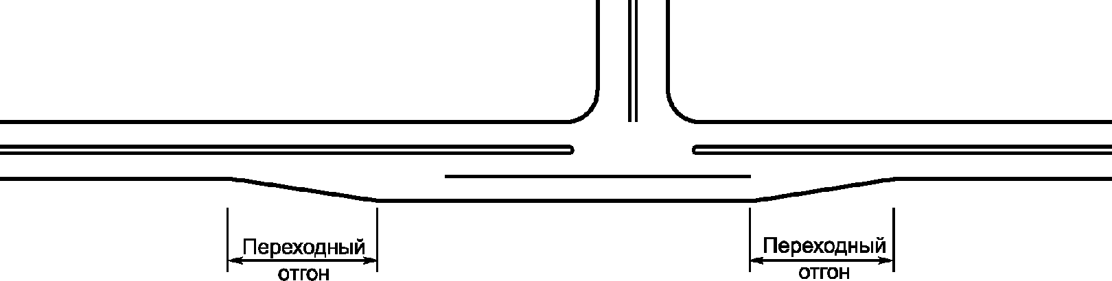 3.11 примыкание в одном уровне: Пересечение в одном уровне, имеющее три подхода к пересечению, где к одной дороге присоединяется в одном уровне другая дорога, не имеющая прямого продолжения и прерывающаяся в месте соединения.