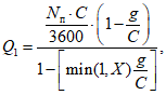 где Q1 - первая составляющая длины очереди, приведенных автомобилей, вычисляемая по формуле