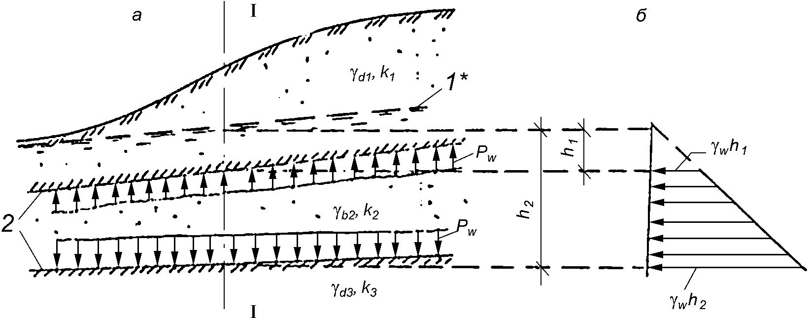 Ж.4 При наличии водоупора к его границе вертикально прикладывается распределенная нагрузка