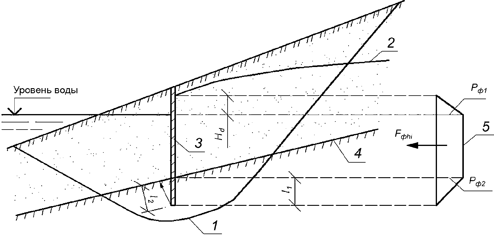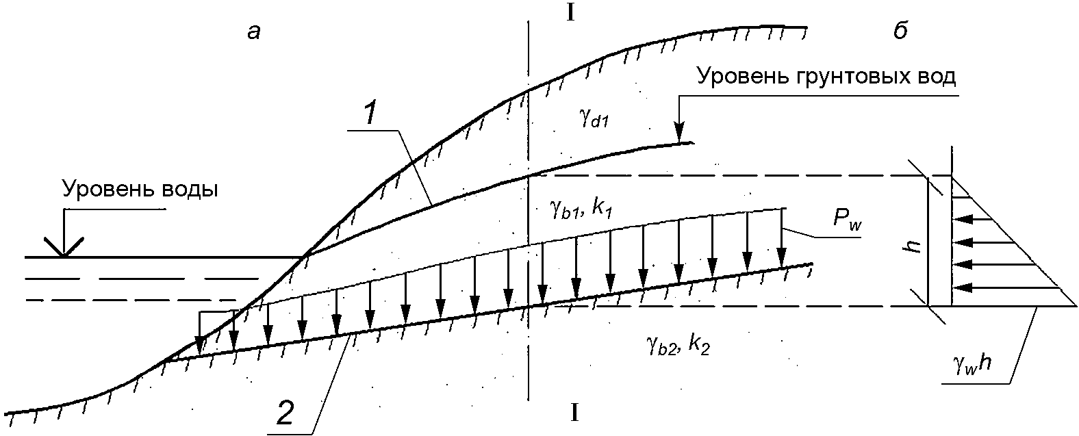 Ж.6 В расчетах устойчивости эпюры горизонтальных нагрузок от давления фильтрующей воды допускается определять по указаниям