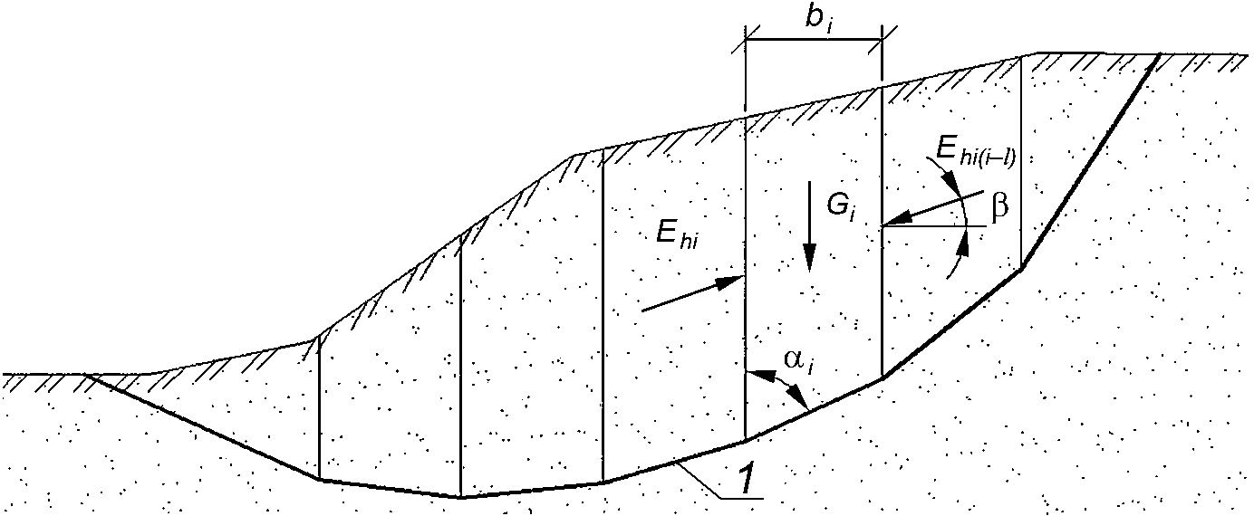 4.7 Расчеты общей устойчивости проводят для вертикальных расчетных сечений. Их размеры, количество и расположение зависят от конструкции и протяженности объекта, от конкретных инженерно-геологических условий, расположения на склоне сооружений, от стадии проектирования и др. Расчетные сечения задаются по направлению ожидаемого оползневого смещения, в том числе, по направлению максимального падения отметок земной поверхности и крыши коренного грунта. Они могут быть как прямолинейными, так и слабо искривленными в плане. Размеры и положение расчетных сечений должны полностью охватывать область возможных оползней.