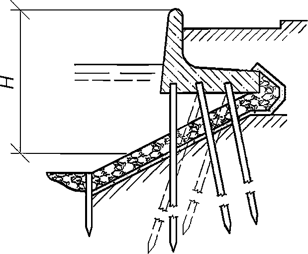 5 | В виде высокого свайного ростверка с передним или задним шпунтом | H - любая | На слабых грунтах |