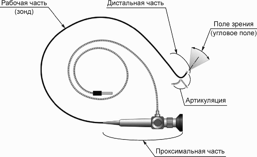 3.4 рабочая часть (зонд): Конструктивно выделенная и погружаемая в контролируемый объект часть технического эндоскопа, внутри которой формируется и передается изображение контролируемого объекта.