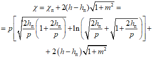 Примечание - h - глубина воды в канале, м; p - параметр параболы;  - характеристика живого сечения;  - функция параболического сечения. |