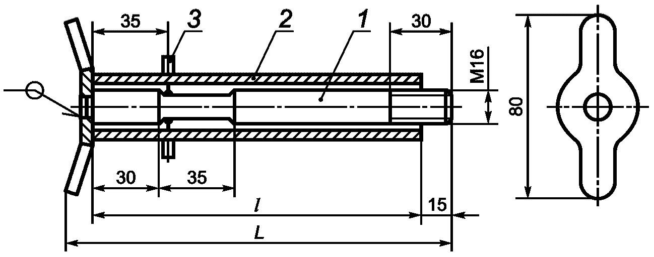 1 - шпилька; 2 - направляющая; 3 - платик; 4 - гайка;