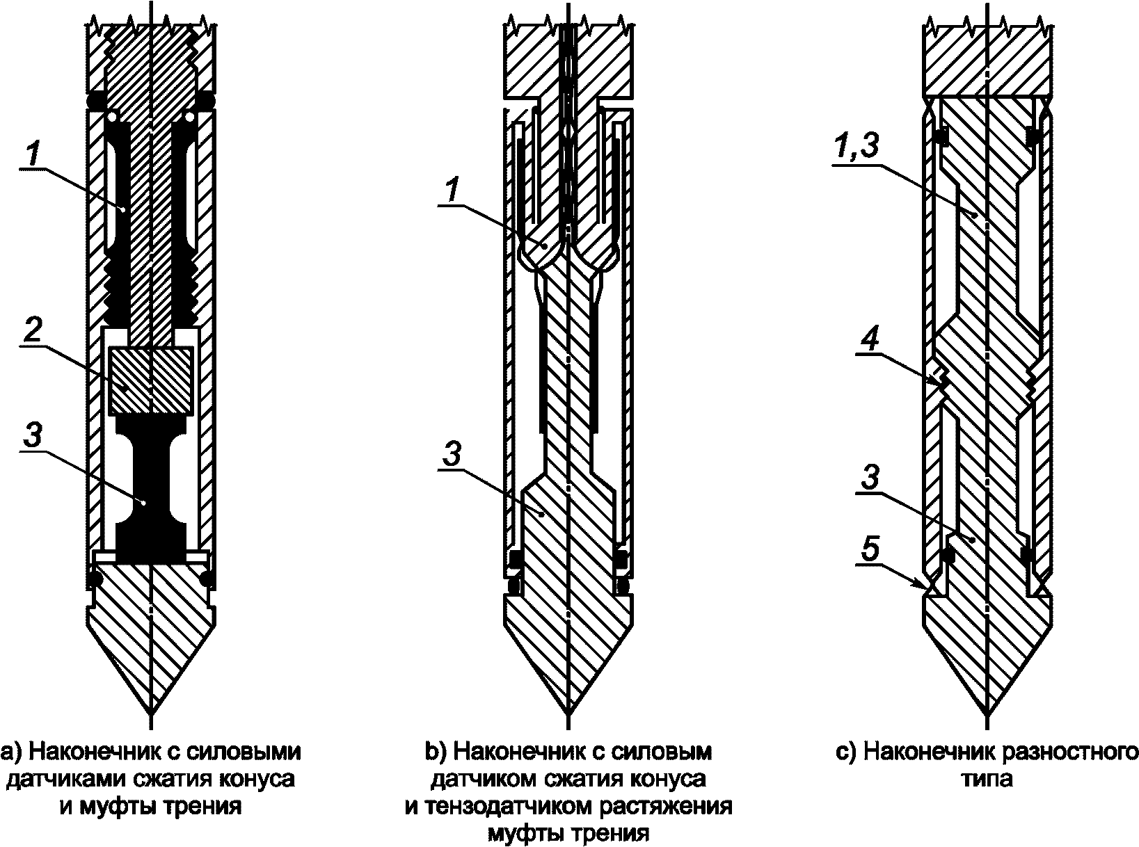 Примечание 1 - Когда зонд задавливают в грунт, сопротивление грунта передается через конус на тензодатчик.