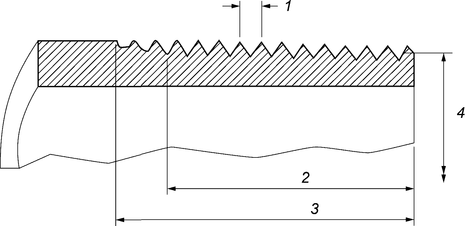 1 - шаг (p); 2 - эффективная длина резьбы; 3 - полная