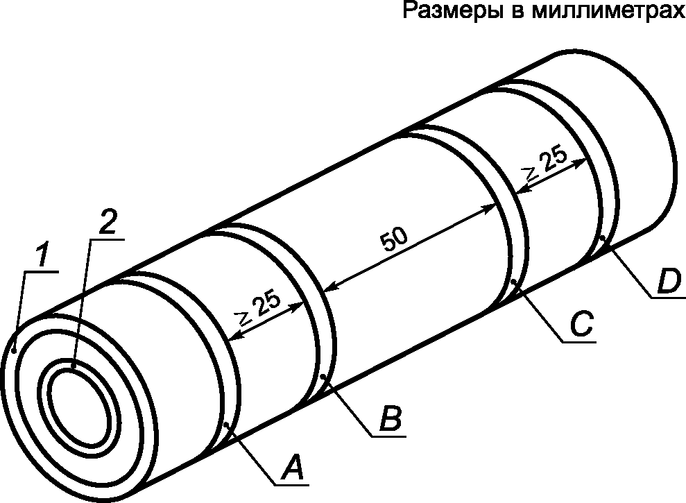 1 - образец; 2 - наружная оболочка; 3 - металлическая
