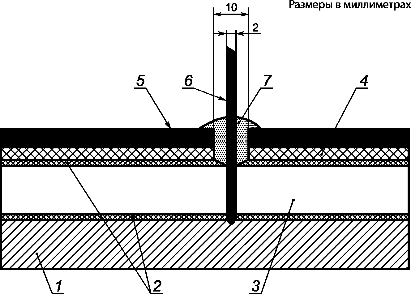 Прочность адгезии рассчитывают путем деления усилия отслаивания, Н, на ширину образца, мм. Испытание проводят не менее чем на пяти образцах; значение прочности адгезии должно быть не менее 0,5 Н/мм.