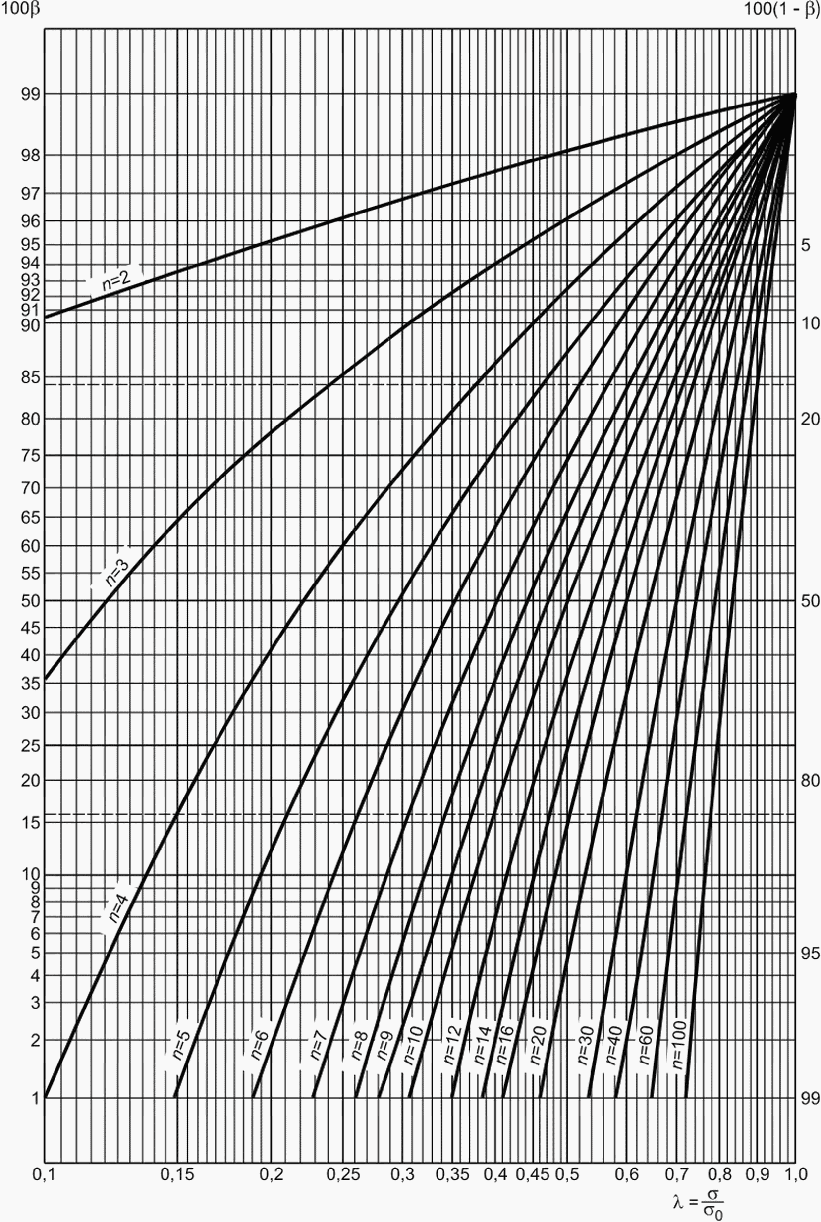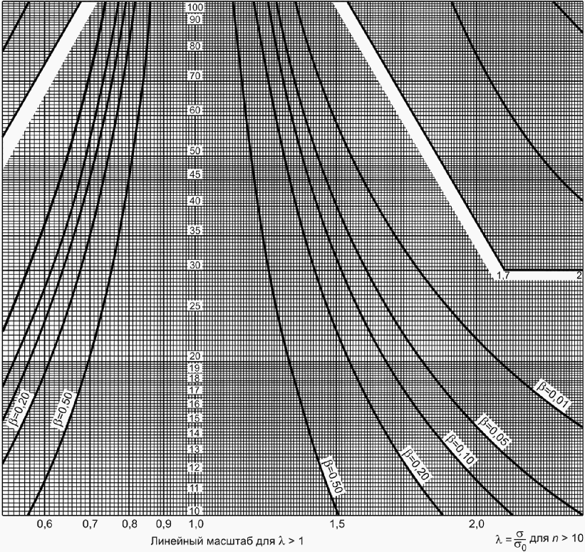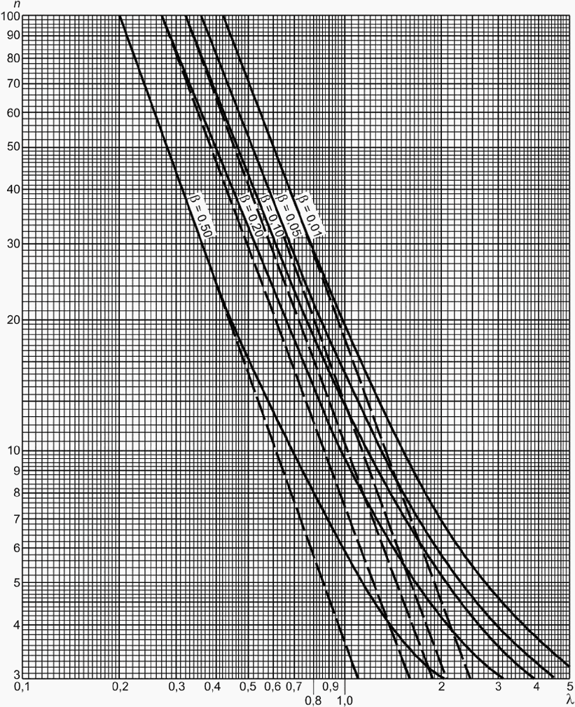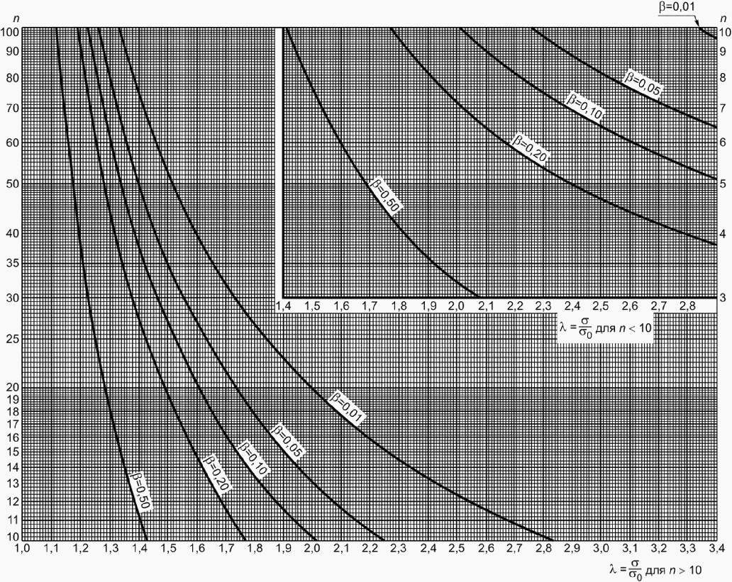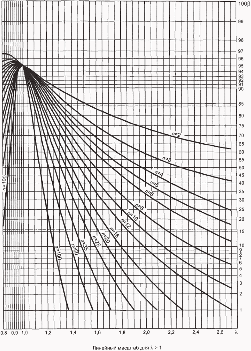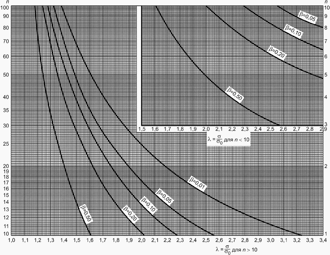 - наборы кривых 1.2 - 14.2, задающие объем(ы) выборки как функцию альтернативы для