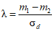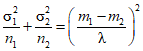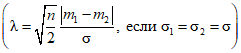 b) Гипотеза m1 <= m2 или m1 >= m2: