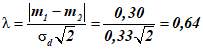 зависит также от выбранного значения риска первого рода, объема выборки и типа критерия (двусторонний или односторонний).