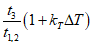 - термоакустический коэффициент, зависящий от разницы температурных коэффициентов времени распространения продольной и сдвиговой волны в материале, а