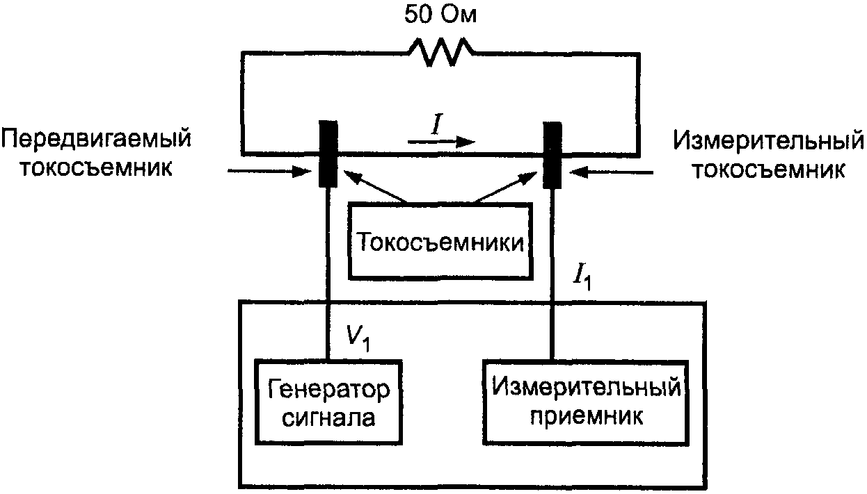 Калибруют токосъемники для настройки и измерений в пятидесятиомной системе (см. рисунок А.5). Для этого подают напряжение