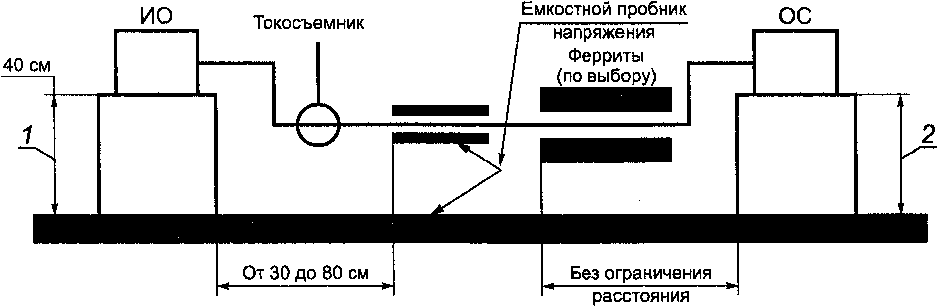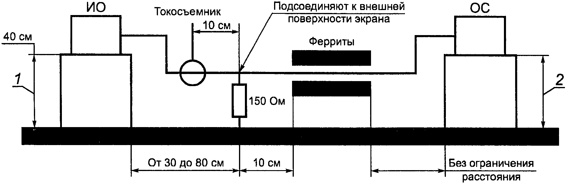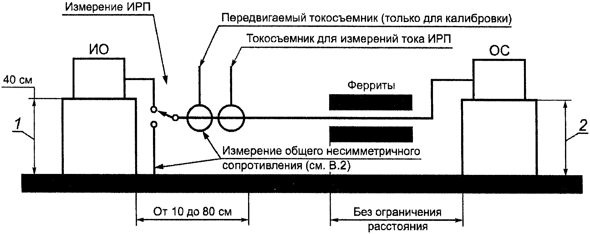 в измерительном токосъемнике и определяют общее несимметричное сопротивление кабеля с ферритовой трубкой и оборудования, связанного с основным путем сравнения значения тока