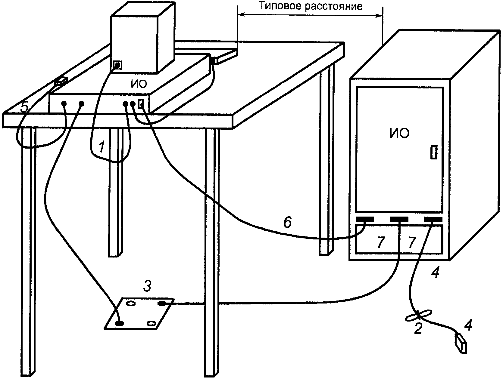 4.1.2. Соединительные кабели (нагрузки, оборудование, связанное с ИО) подключают по крайней мере к одному из портов ИО. В качестве оборудования, связанного с ИО, используют устройства, типичные для реальных условий применения ИО.