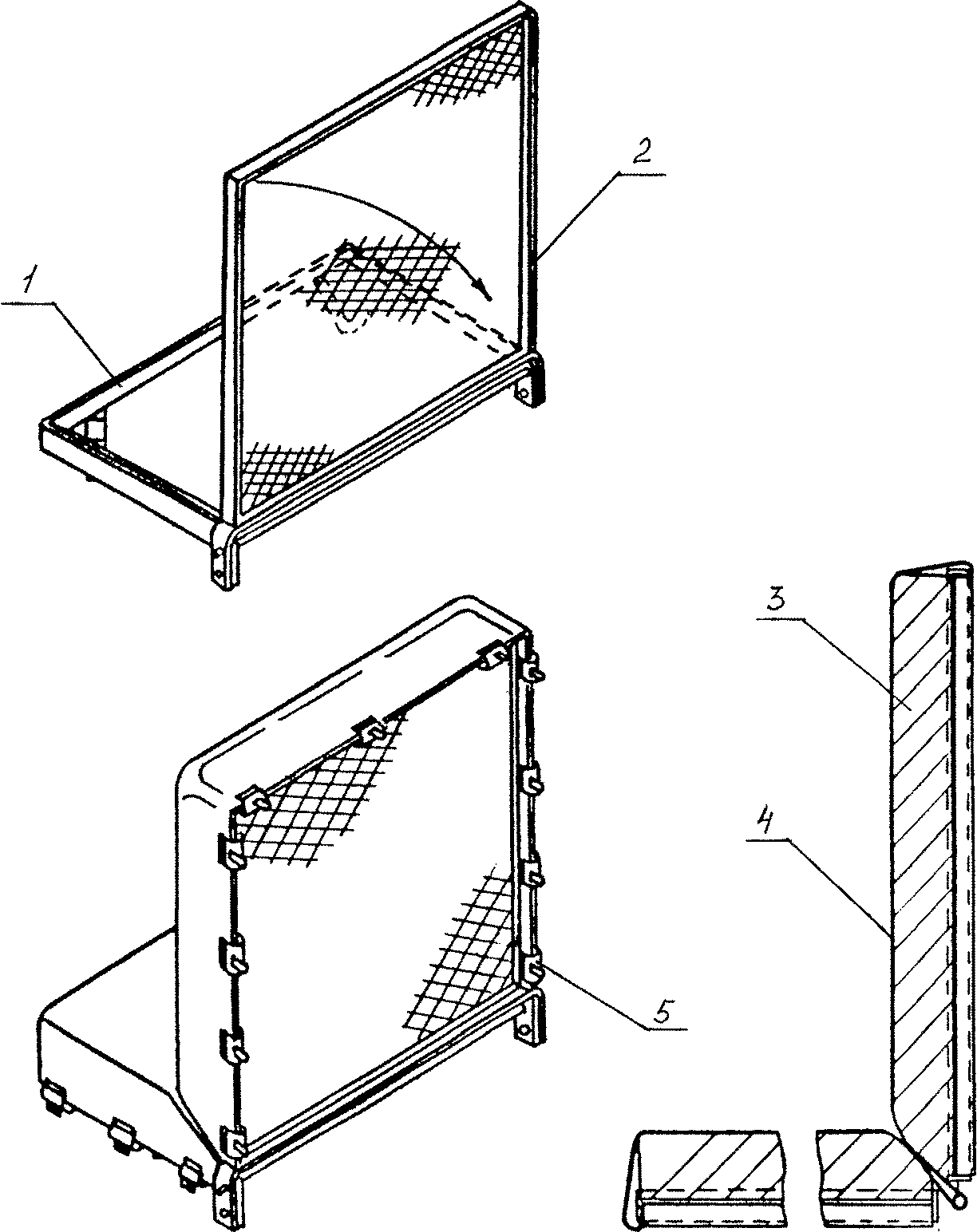 1, 2 - стальные рамы; 3 - шарнир; 4, 5 - стальные сетки;