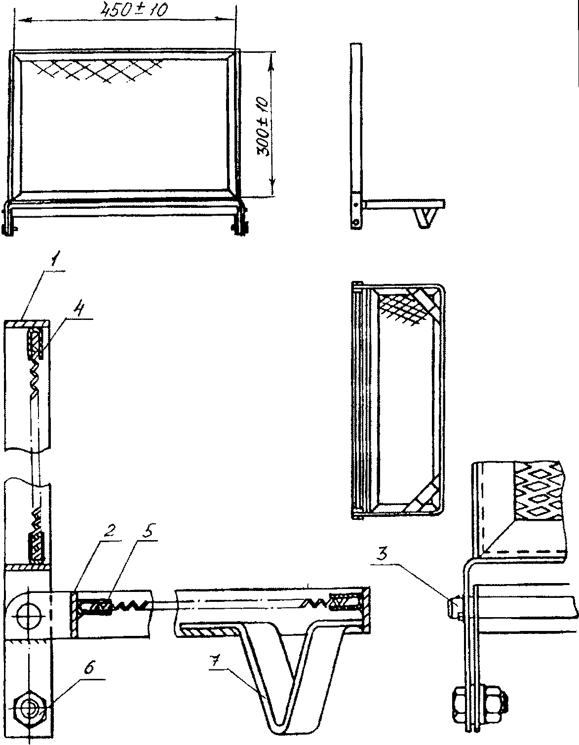 8). Рамы изготавливают из стальных уголков размером 25 x 25 x 3 мм, к которым крепится стальная сетка. Площадь ячейки стальной сетки составляет от 15 до 150 мм
