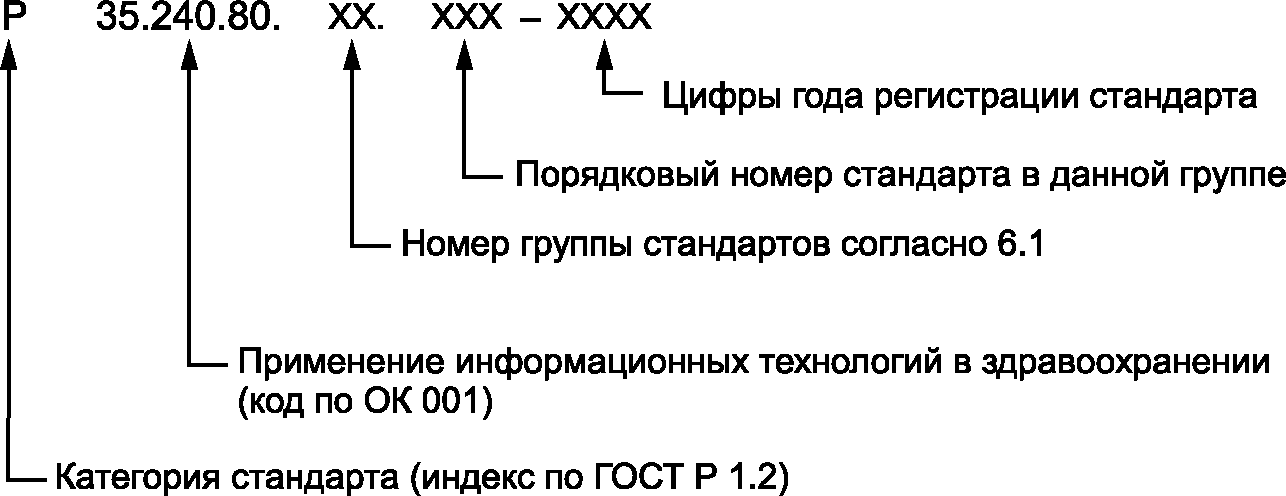 6.13 Устанавливается следующая система обозначения национальных стандартов, входящих в комплекс стандартов информатизации здоровья: