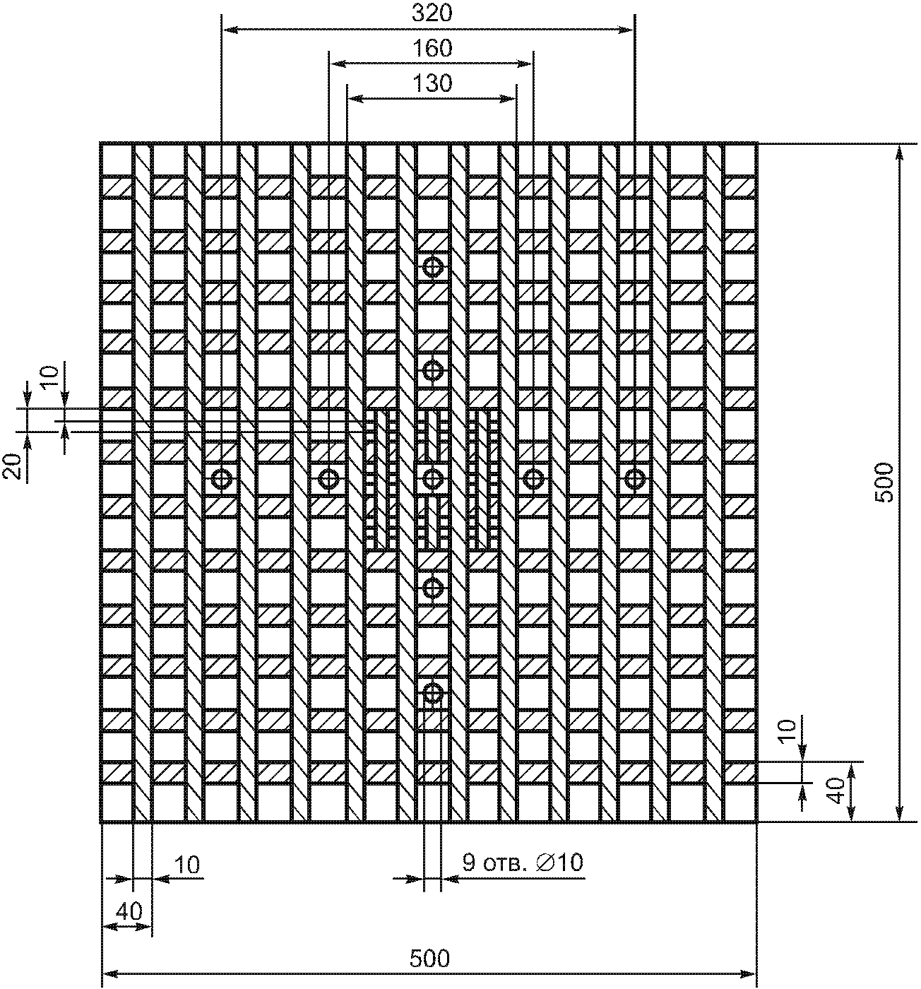 Рисунок В.3. Мира с метками и отверстиями для измерения