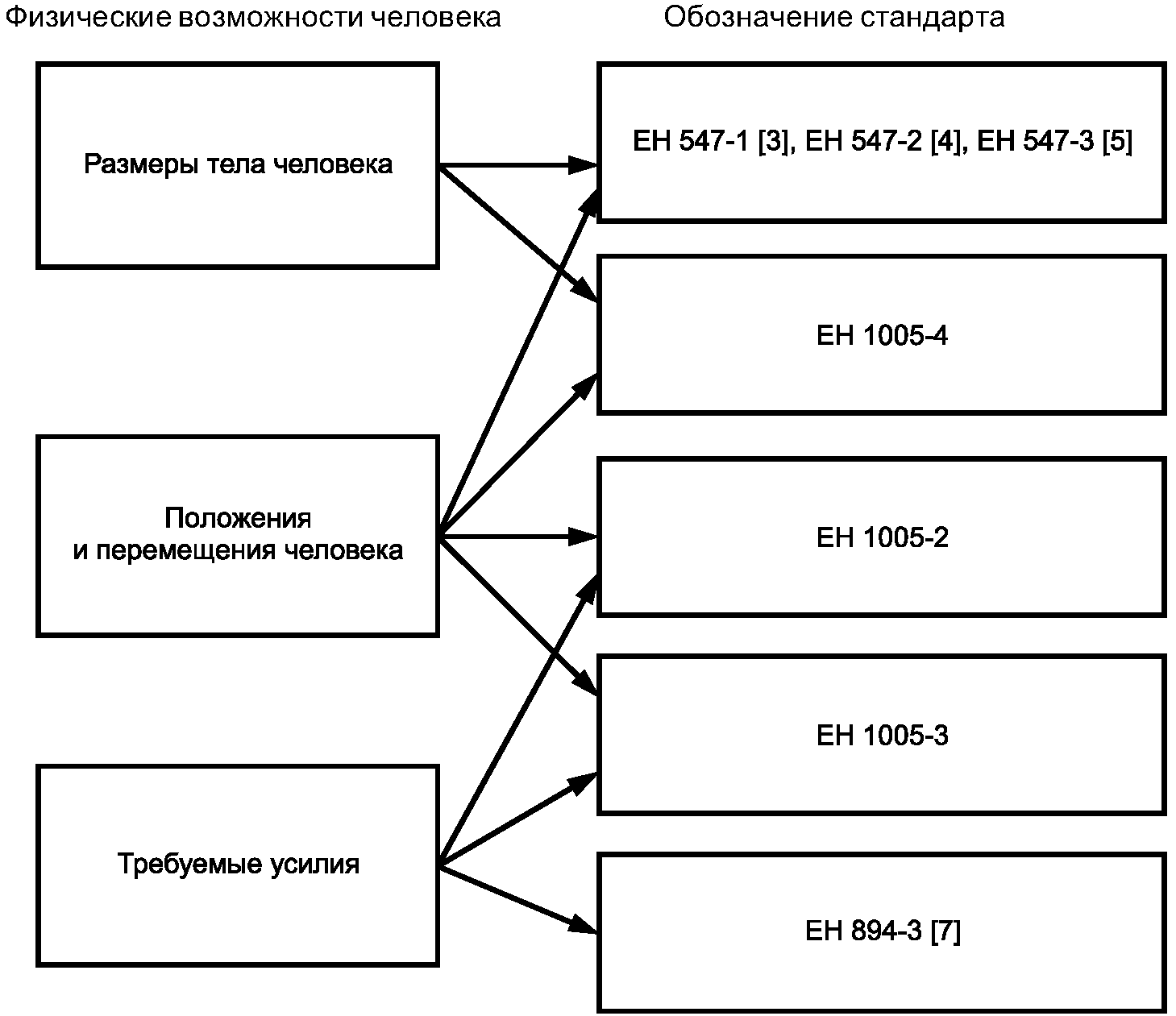 Серия стандартов ЕН 1005 состоит из пяти стандартов, в которых рассматривается зависимость работоспособности человека от конструкции машины. В разделе "Область применения" каждого из этих документов определены границы его применения.