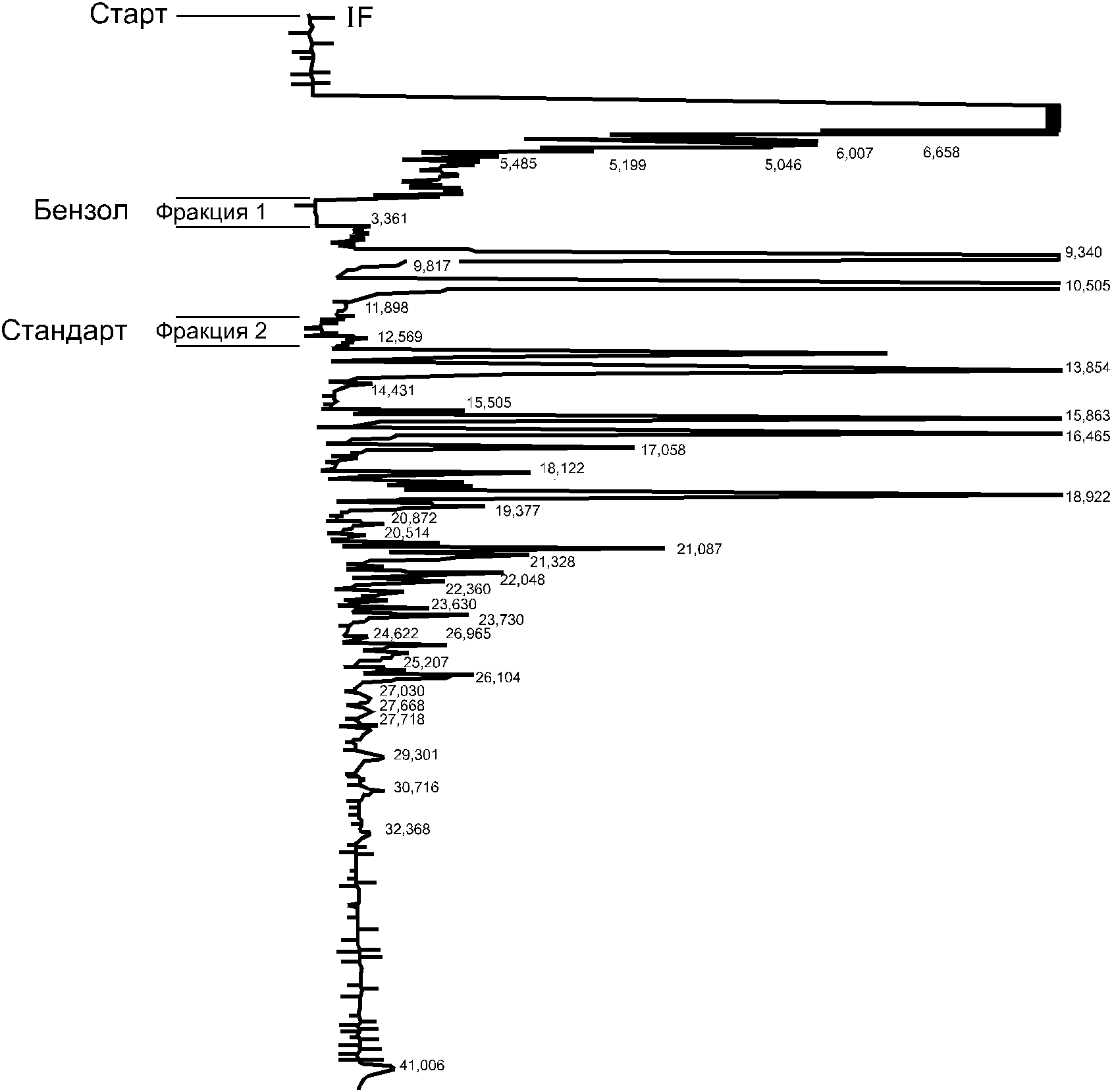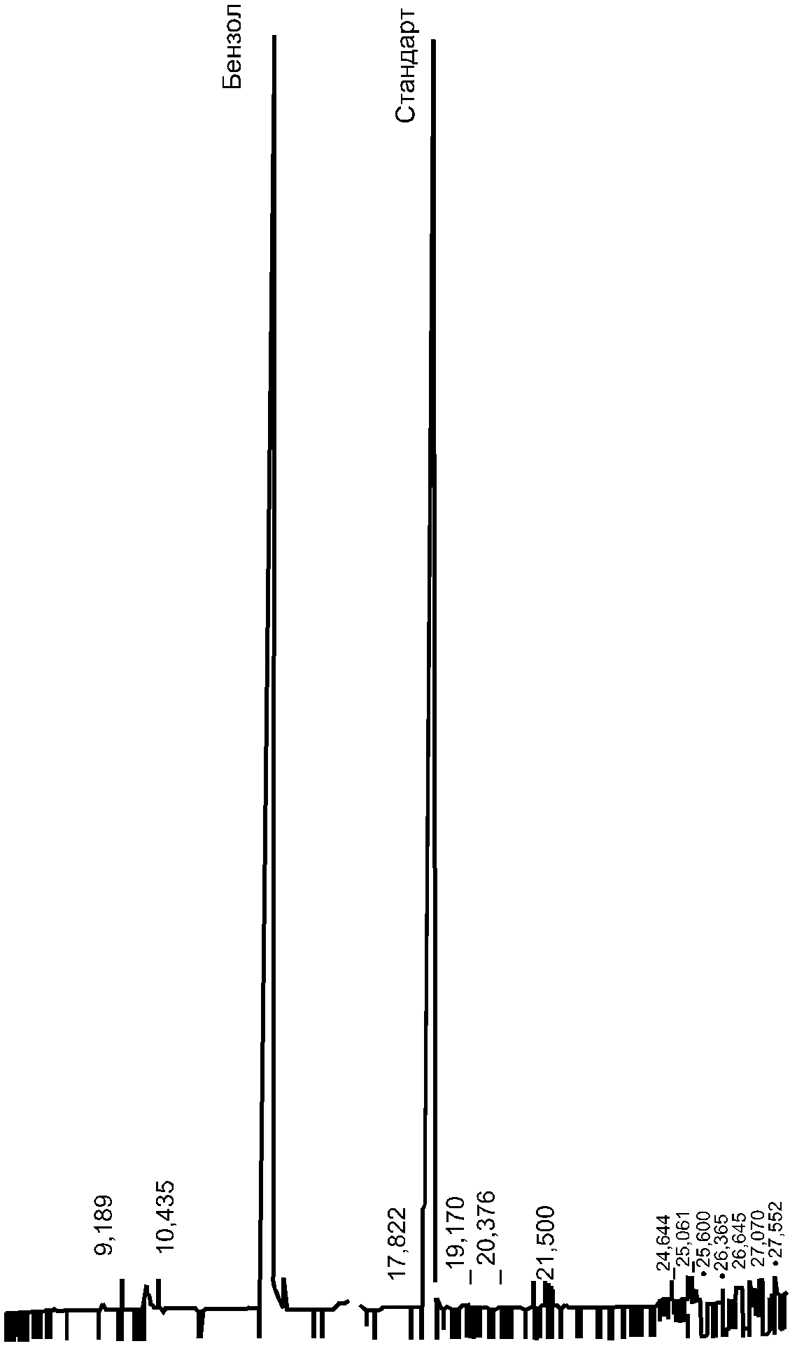 Фракцию, содержащую бензол, выделяют из испытуемого образца бензина с помощью капиллярной колонки, затем во второй капиллярной колонке проводят выделение и определение (детектирование) бензола с помощью пламенно-ионизационного детектора.