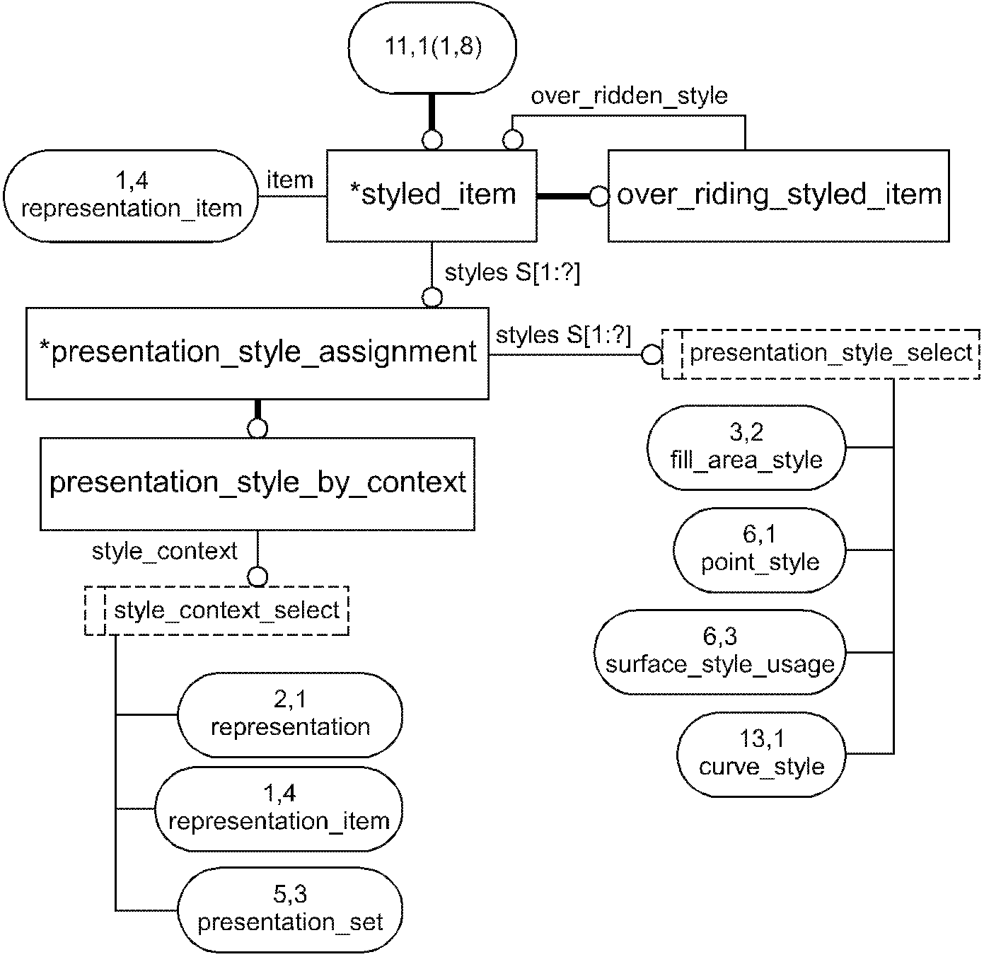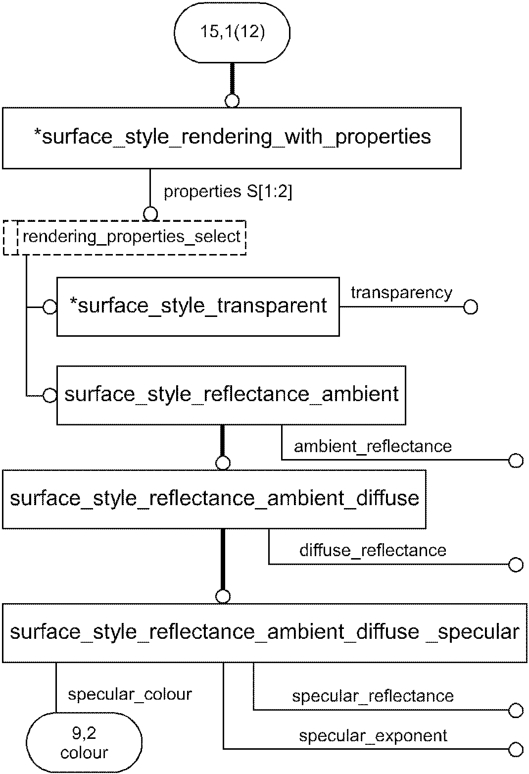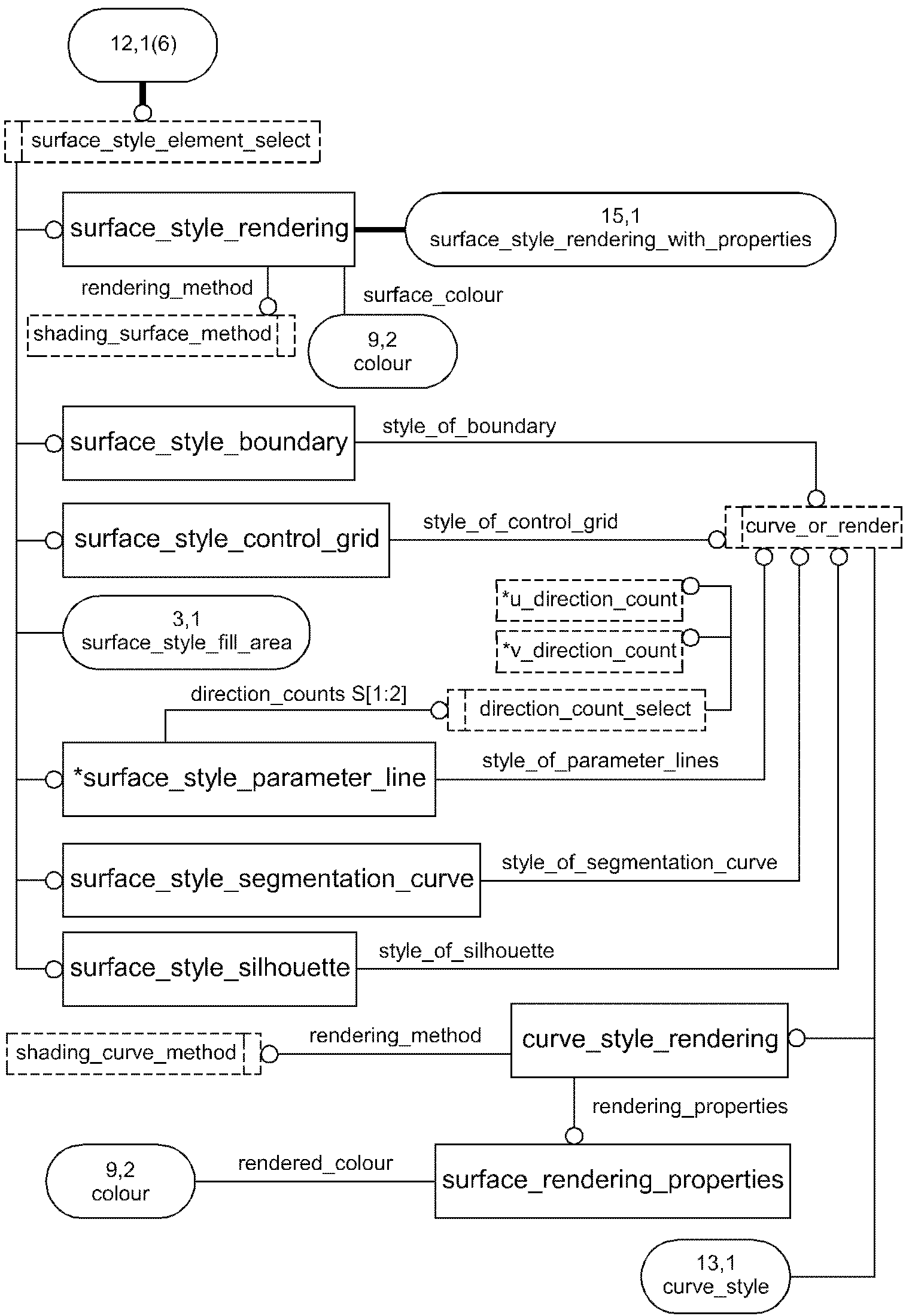 WR13 - атрибут style_of_silhouette объекта surface_style_silhouette должен быть объектом curve_style_rendering или curve_style. В случае объекта curve_style атрибут curve_colour должен быть объектом colour_rgb или draughting_pre_defined_colour; атрибут curve_width должен быть объектом positive_length_measure; атрибут curve_font должен быть объектом curve_style_font или draughting_pre_defined_curve_font. В случае объекта curve_style_rendering атрибут rendered_colour объекта rendering_properties должен быть объектом colour_rgb или draughting_pre_defined_colour.