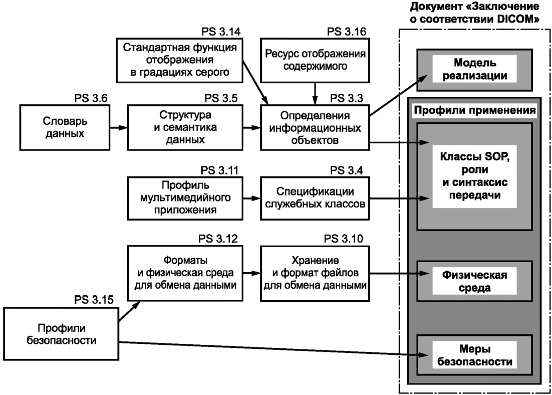 рисунке 4 показано отображение отдельных аспектов профиля применения на разные части DICOM.