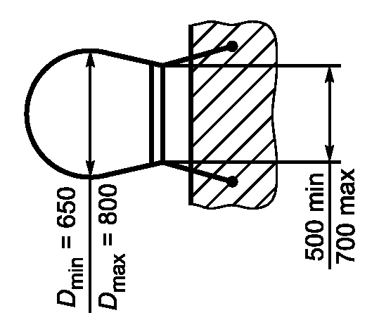 рисунок 14). Испытательная нагрузка должна продолжаться не менее 1 мин. Допустимый прогиб, измеренный в точке приложения нагрузки, не должен превышать 10 мм. Остаточной деформации не должно быть.