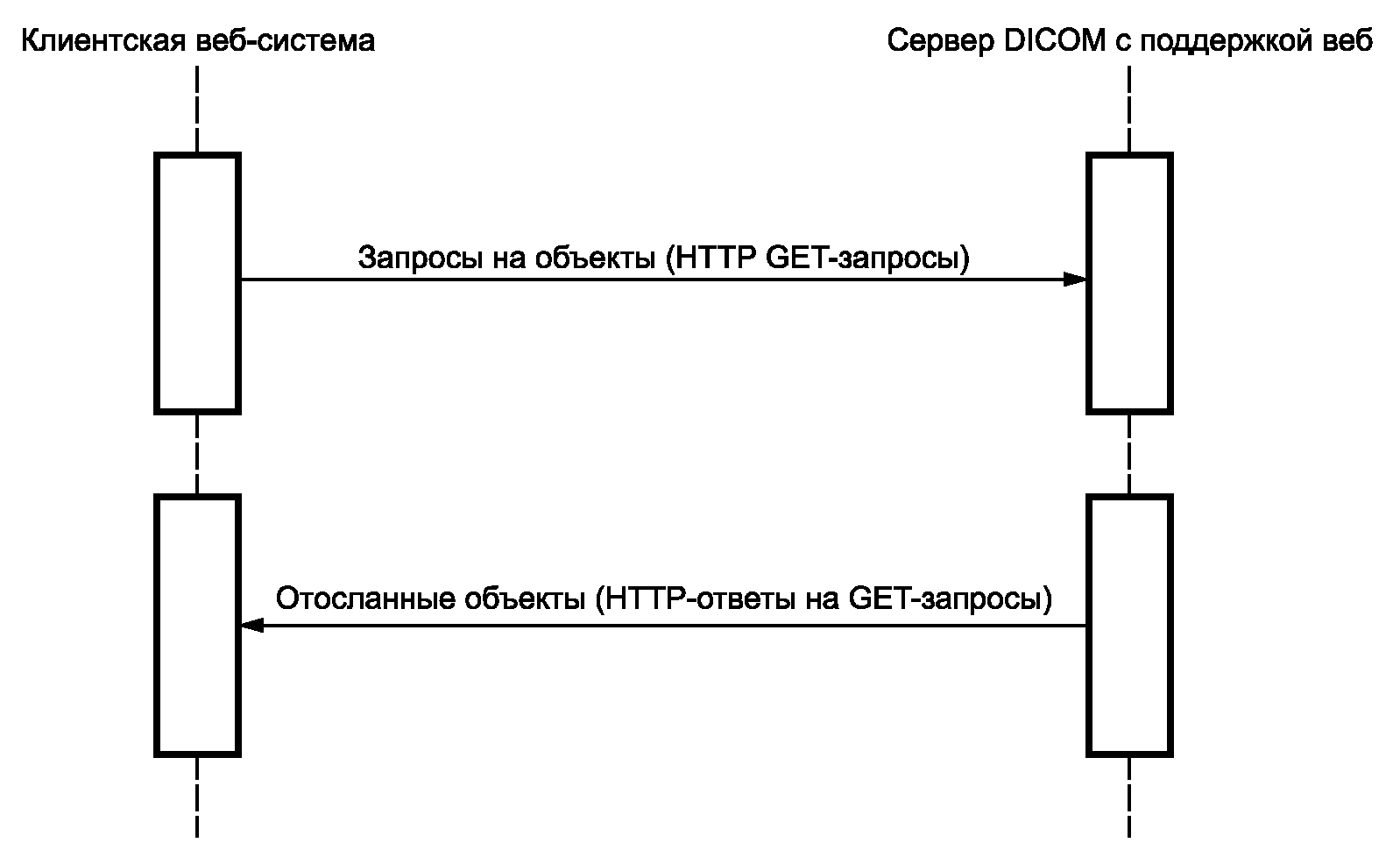 3.4 веб-доступ к постоянным объектам DICOM (web access to DICOM persistent objects): Служба, позволяющая клиентской веб-системе получать перманентные объекты DICOM, управляемые доступным через веб сервером DICOM, по протоколу HTTP/HTTPs.