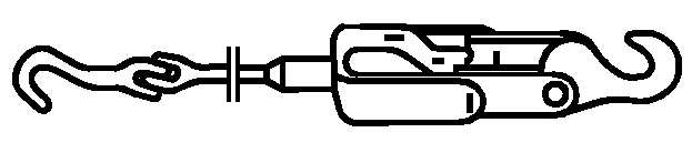 Конструкция устройства натяжения должна обеспечивать его присоединение одним концом к нижней части контейнерной штанги и другим концом - к транспортному средству. Устройство натяжения должно быть достаточной длины, чтобы совместно с контейнерной штангой его можно было устанавливать между угловыми фитингами и транспортным средством. Оно должно быть оборудовано устройствами, которые стопорят устройство натяжения, т.е. контргайками (рисунок D.6). Устройство натяжения не должно быть ослаблено или чрезмерно натянуто.