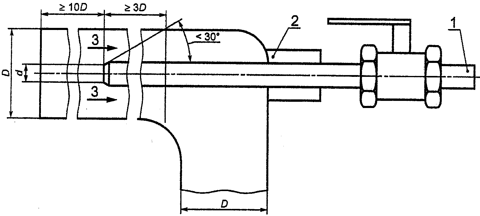1 - пробоотборник в основном трубопроводе; 2 - муфта
