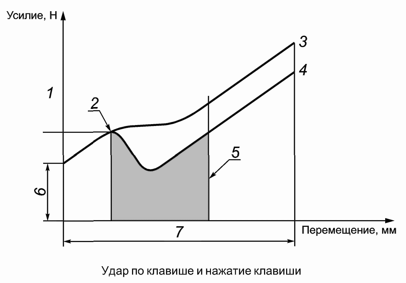 3.1.10. Усилие нажатия клавиши (key force): сила, необходимая для перемещения клавиши из неактивированного положения в активированное.