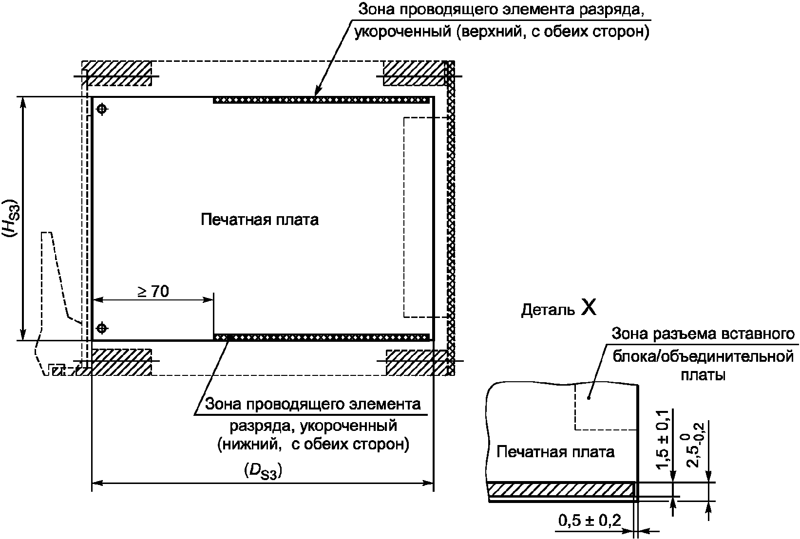 Настоящий раздел определяет размеры контактирующих элементов направляющих для электростатического разряда и соответствующих проводящих элементов на печатных платах вставного блока.