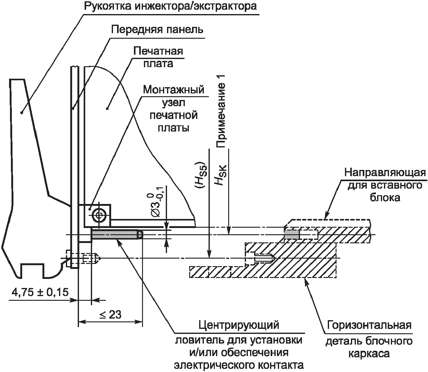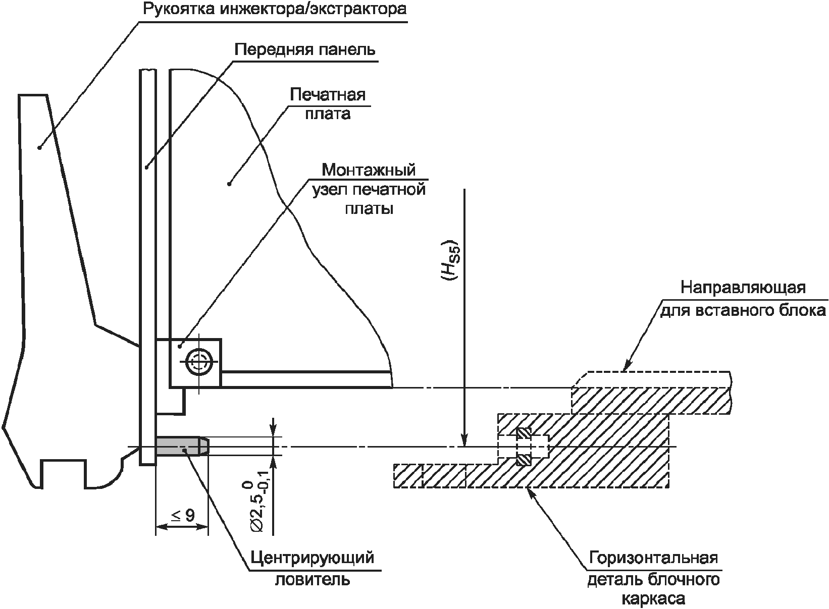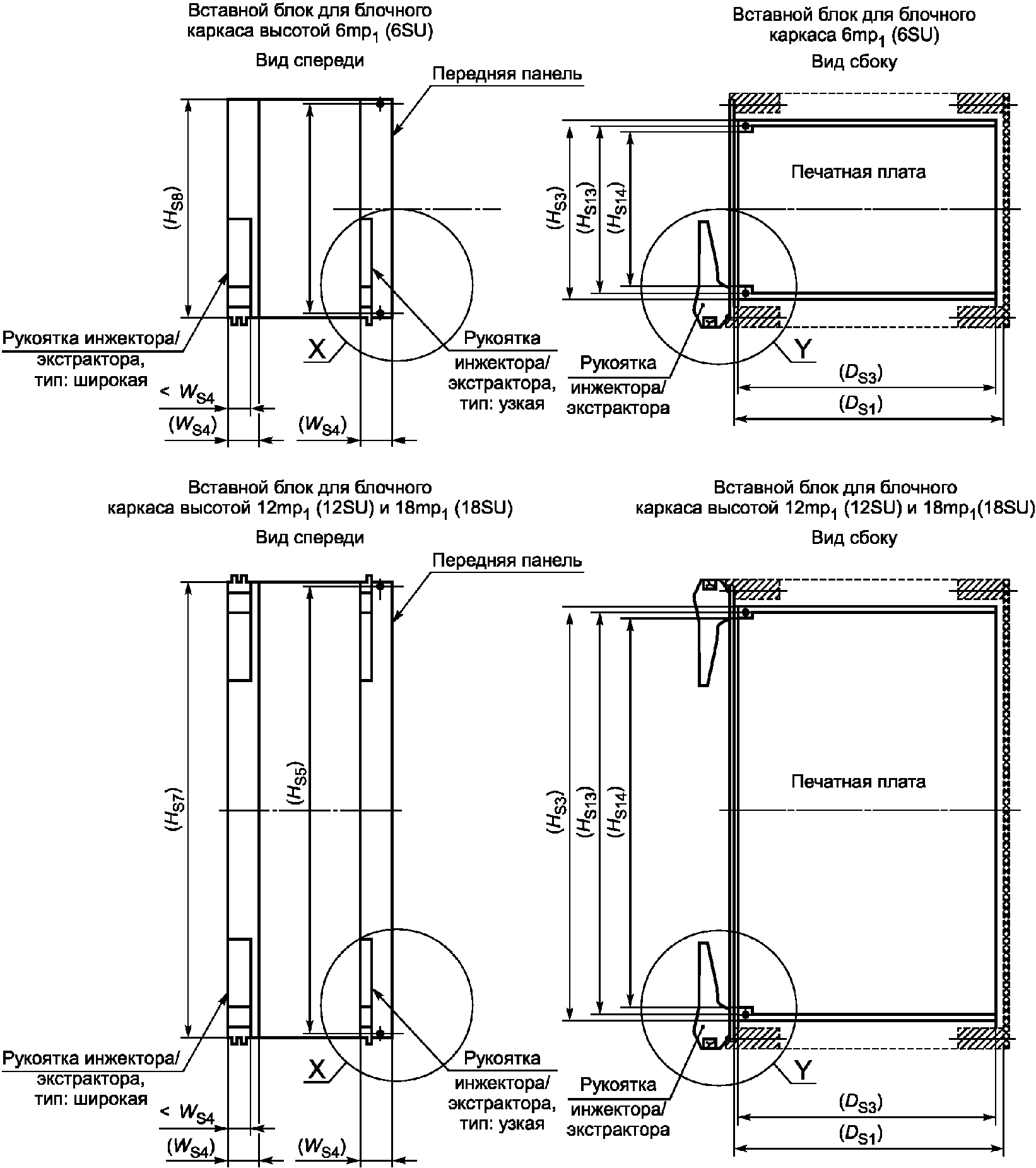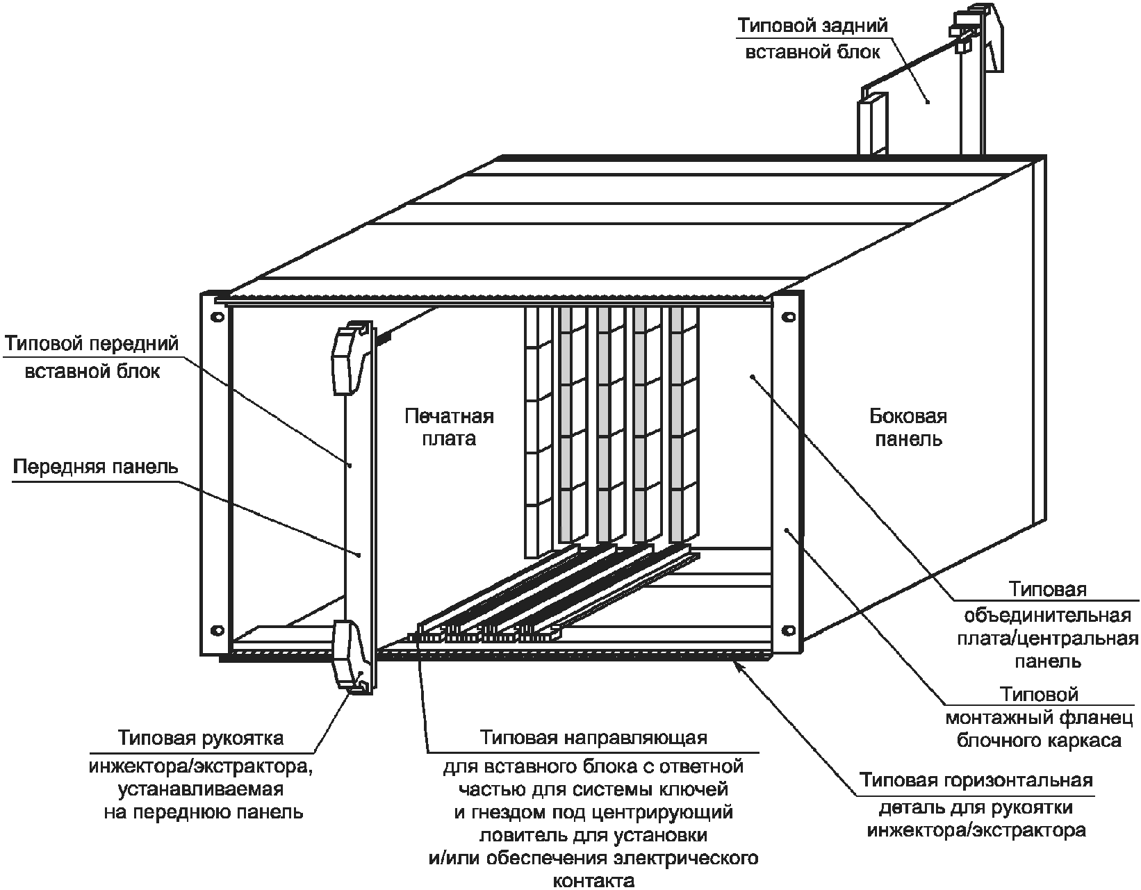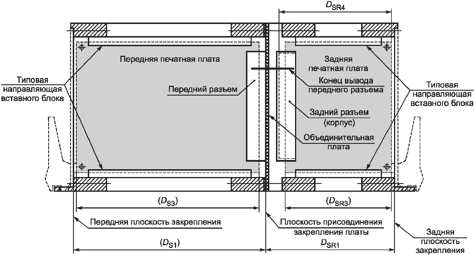 В настоящем разделе определен диапазон размеров печатной платы задних вставных блоков и задней плоскости блочного каркаса для присоединения передней панели вставного блока (см.
