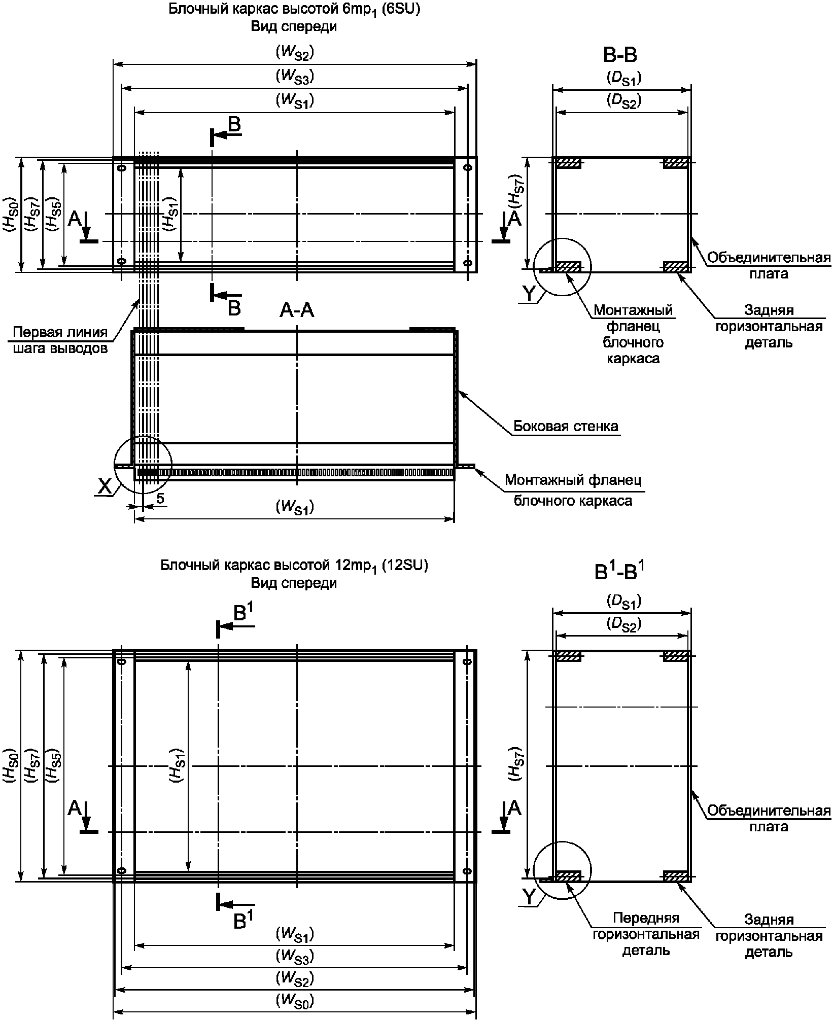 РАЗМЕРЫ ДЛЯ БЛОЧНЫХ КАРКАСОВ, ШАССИ, ОБЪЕДИНИТЕЛЬНЫХ ПЛАТ,