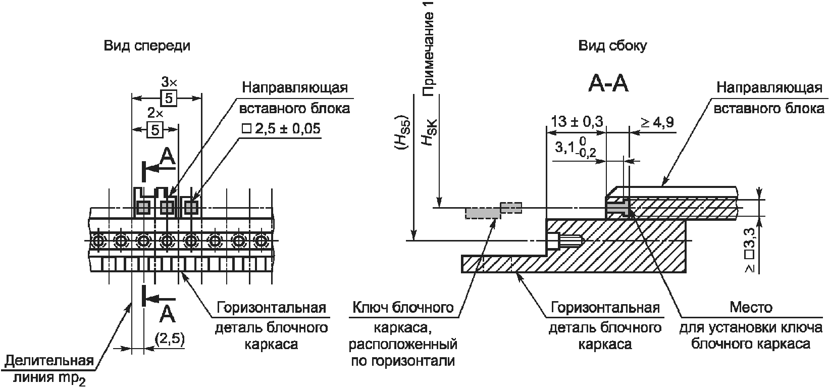 Для обеспечения совместимости вставных блоков в блочном каркасе определены контрольные размеры и размеры, зависящие от разъемов.