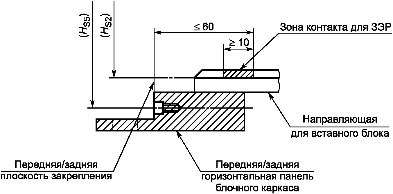 Контактирующие элементы для защиты от электростатического разряда (ЗЭР) должны быть подсоединены к горизонтальным деталям блочного каркаса и обеспечивать необходимое усилие контакта с помощью пружины, зафиксированной между определенными зонами направляющих (см.
