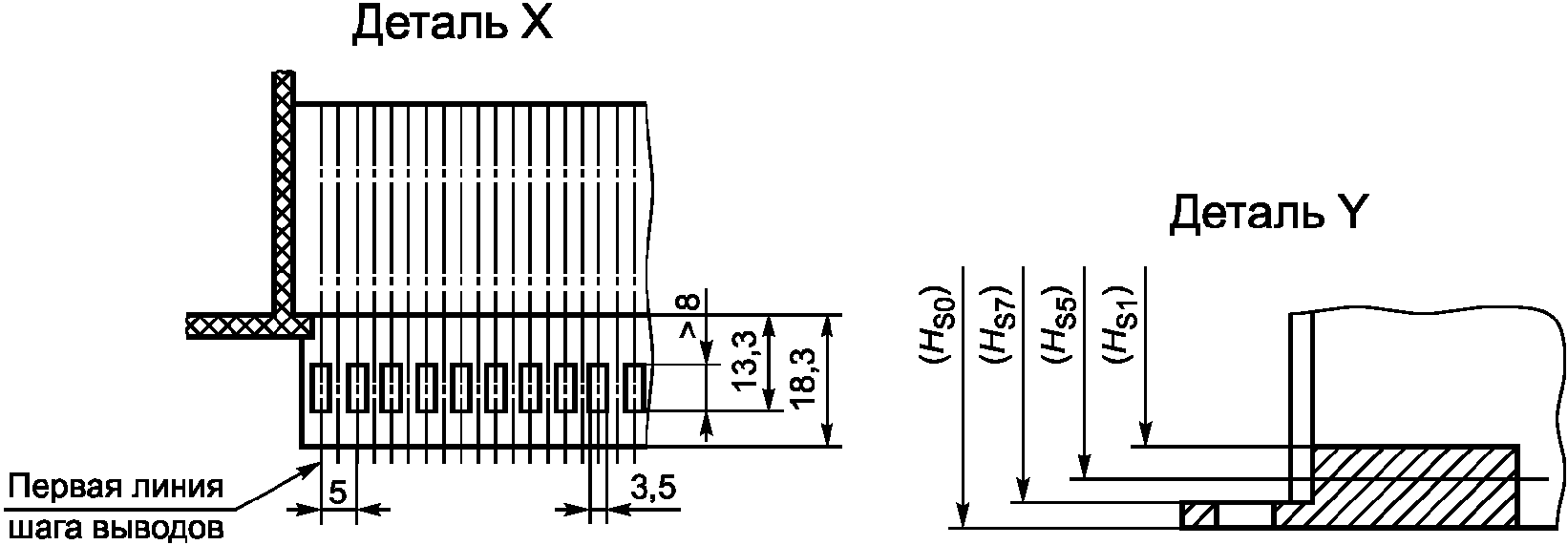 где HS - координационный размер для значений высоты, n x mp1; HS0 - высота блочного каркаса или высота передних панелей на шкафах и стойках; HS1 - высота проема блочного каркаса для вставных блоков HS1 = (n - 1) x mp1; HS2 - высота проема блочного каркаса для вставных блоков с учетом направляющих; HS3 - высота печатной платы и охватываемая высота рамки или вставного частичного каркаса; HS5 - расстояние между центрами монтажных отверстий для вставных блоков, передних панелей, объединительных плат и опор разъема; HS7 - высота проема для передних панелей вставных блоков; HS8 - высота передней панели вставного блока; HS9 - высота объединительных плат; HS13 - расстояние между центрами для монтажных отверстий на печатных платах и передних панелях; HS14 - пространство, используемое для компонентов на передних панелях вставного блока, между монтажными фланцами печатной платы на передней панели. |