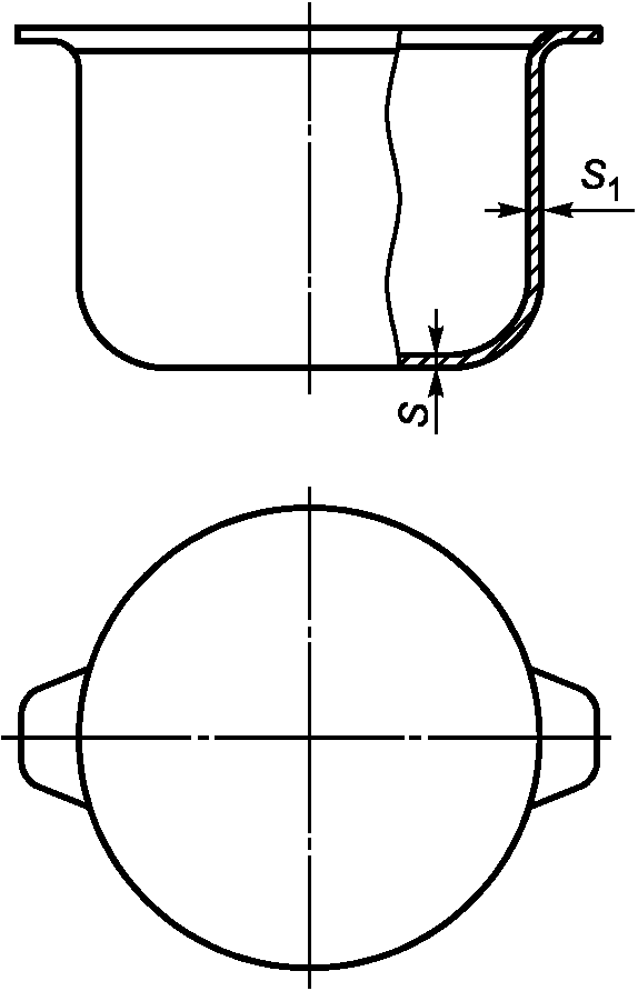 ГОСТ 1770 или другой калиброванной емкости. Недолив воды у посуды с крышкой должен быть 5 - 10 мм до плоскости соприкосновения крышки с корпусом, у посуды без крышки - 6 - 11 мм до верхней кромки борта.