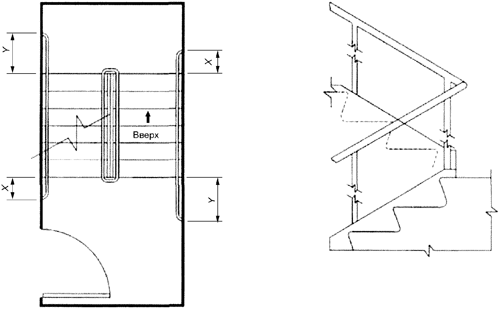 Примечание - x >= 300 мм; y >= 300 мм + ширина проступи (A)