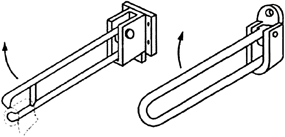 При этом оба парных поручня или один из них, расположенный со стороны подступа к унитазу, выполняют откидными (откидным) или поворотными (поворотным). Откидные или поворотные поручни должны разворачиваться соответственно в вертикальной или горизонтальной плоскостях и фиксироваться в рабочем положении.