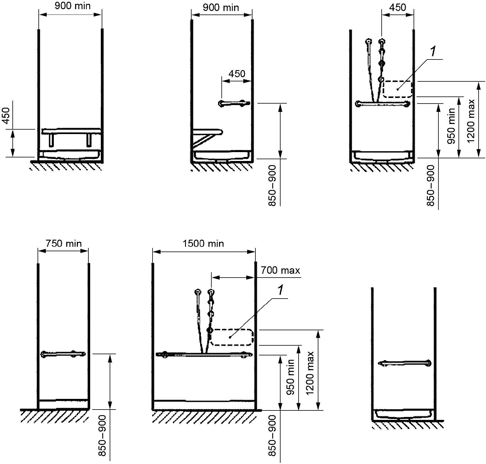 5.2.8.8 Поручни, устанавливаемые в душевых комнатах, доступных для инвалидов, должны быть как минимум прямые или комбинированные горизонтальные