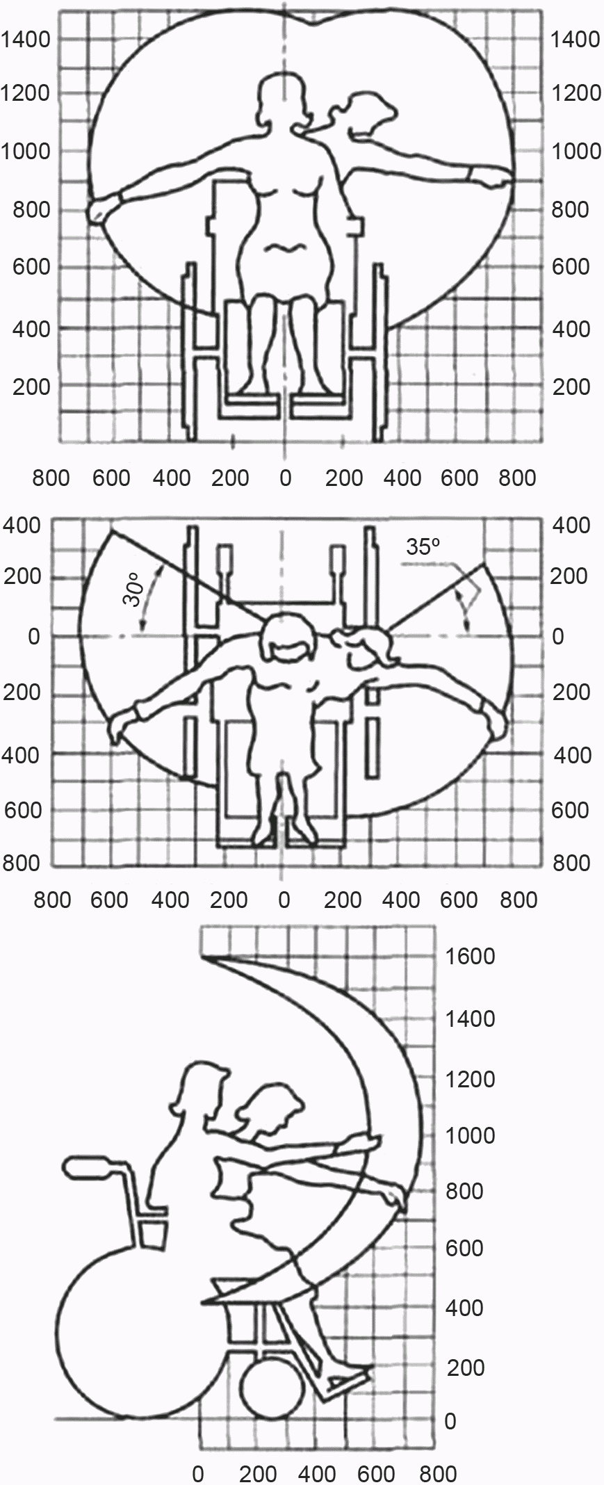 Рисунок А.2 - Зона досягаемости для инвалидов-женщин