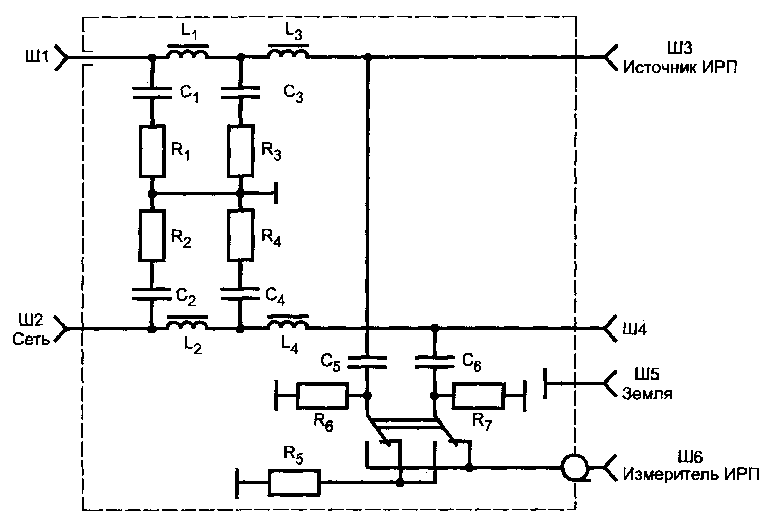- Т-образный эквивалент сети - измерительное устройство, подключаемое к измерителю ИРП и обеспечивающее измерение общего несимметричного напряжения ИРП на линейных зажимах устройств, подключаемых к симметричным двухпроводным линиям связи;