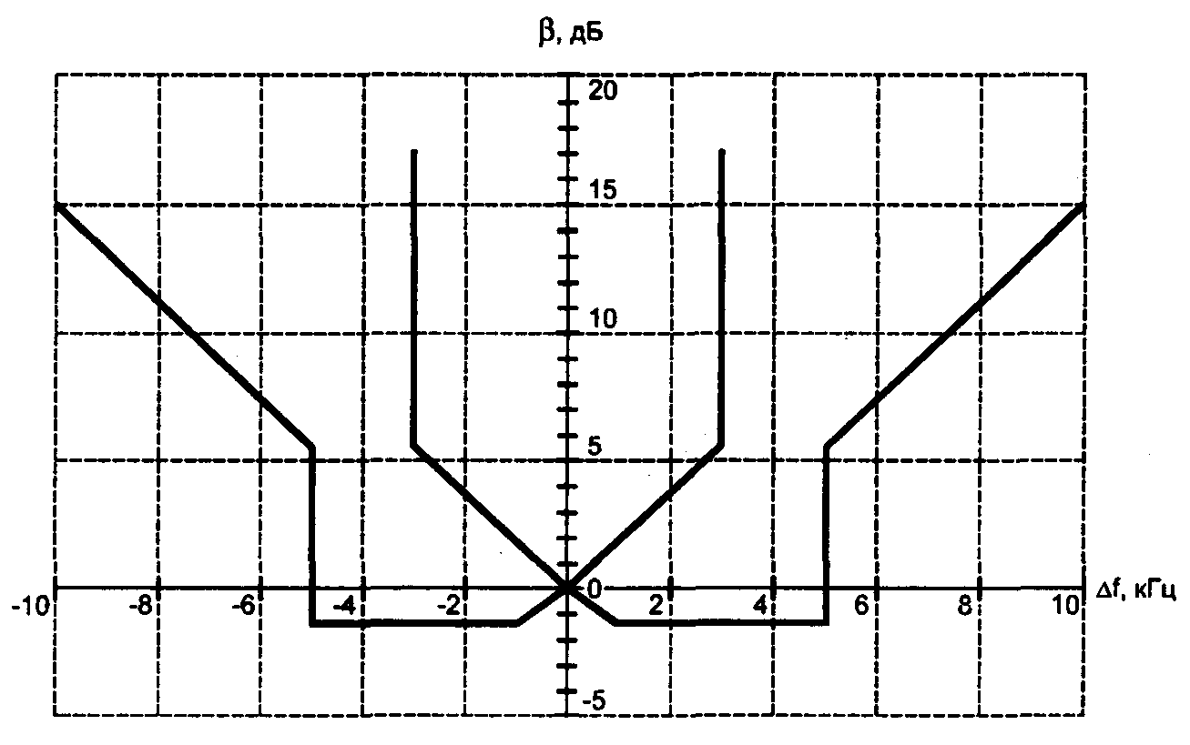 - относительный уровень помех, обусловленный интермодуляционными искажениями третьего порядка при отношении сигнал/шум, равном 1, и расстройке между сигналами 10 МГц - не более минус 40 дБ;