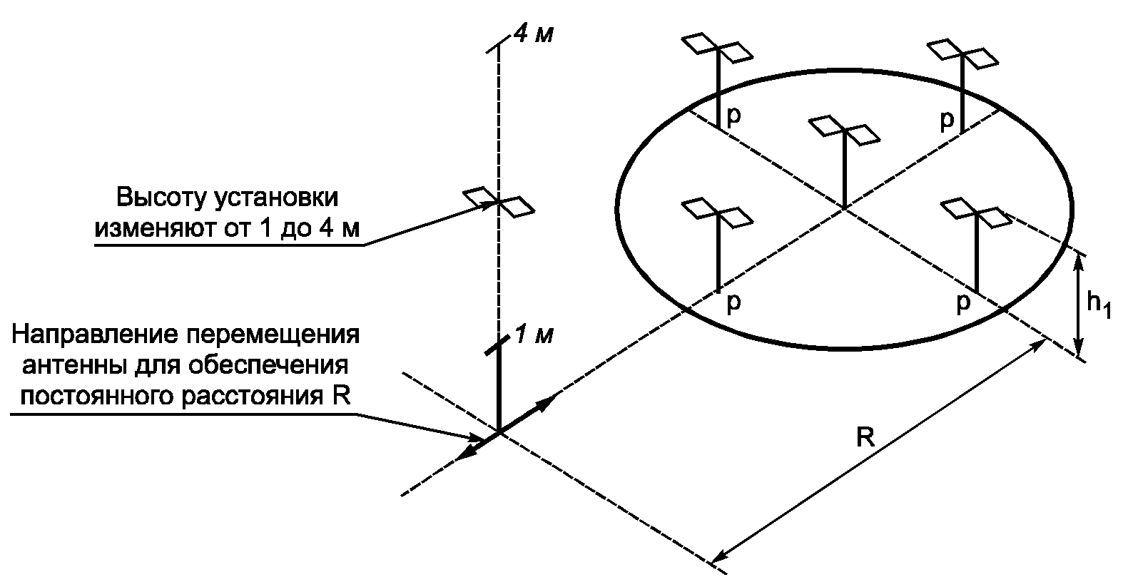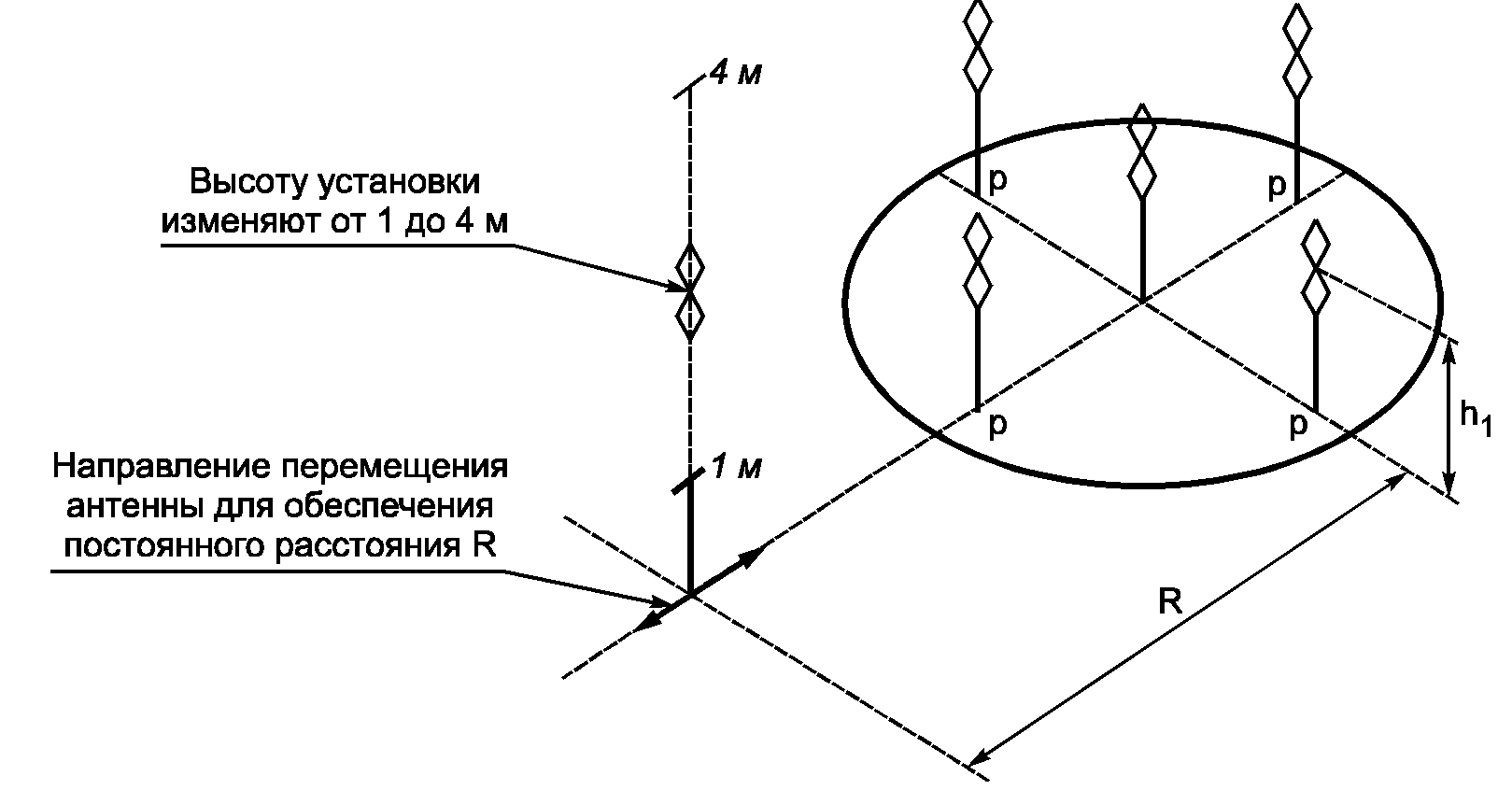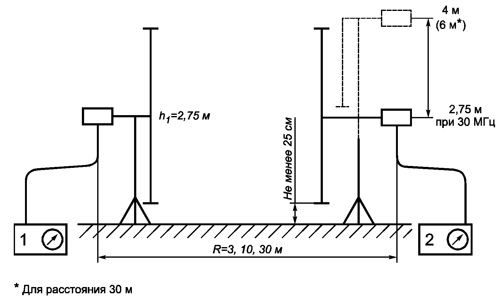 Д.3. При вертикальной поляризации нецентральные позиции передающей антенны должны находиться на границе испытуемого объема. Кроме того, нижний конец антенны должен находиться на высоте не менее 25 см от пола.
