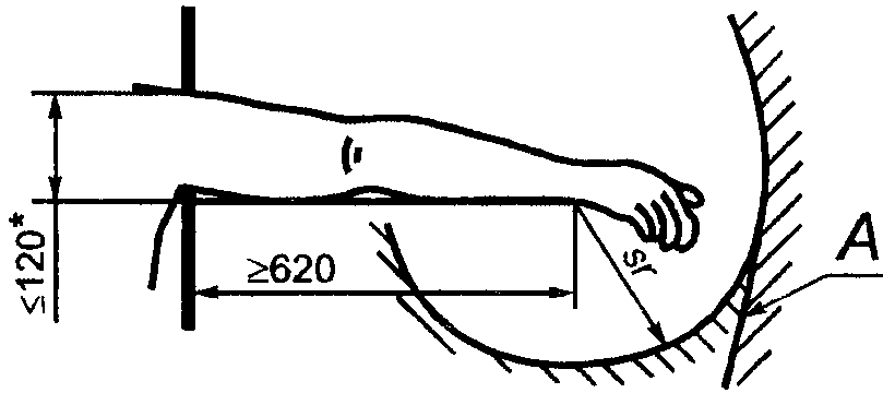 таблиц 3 и 6. Допускается наклон под любым углом защитных ограничителей и поверхностей, на которых может лежать рука.