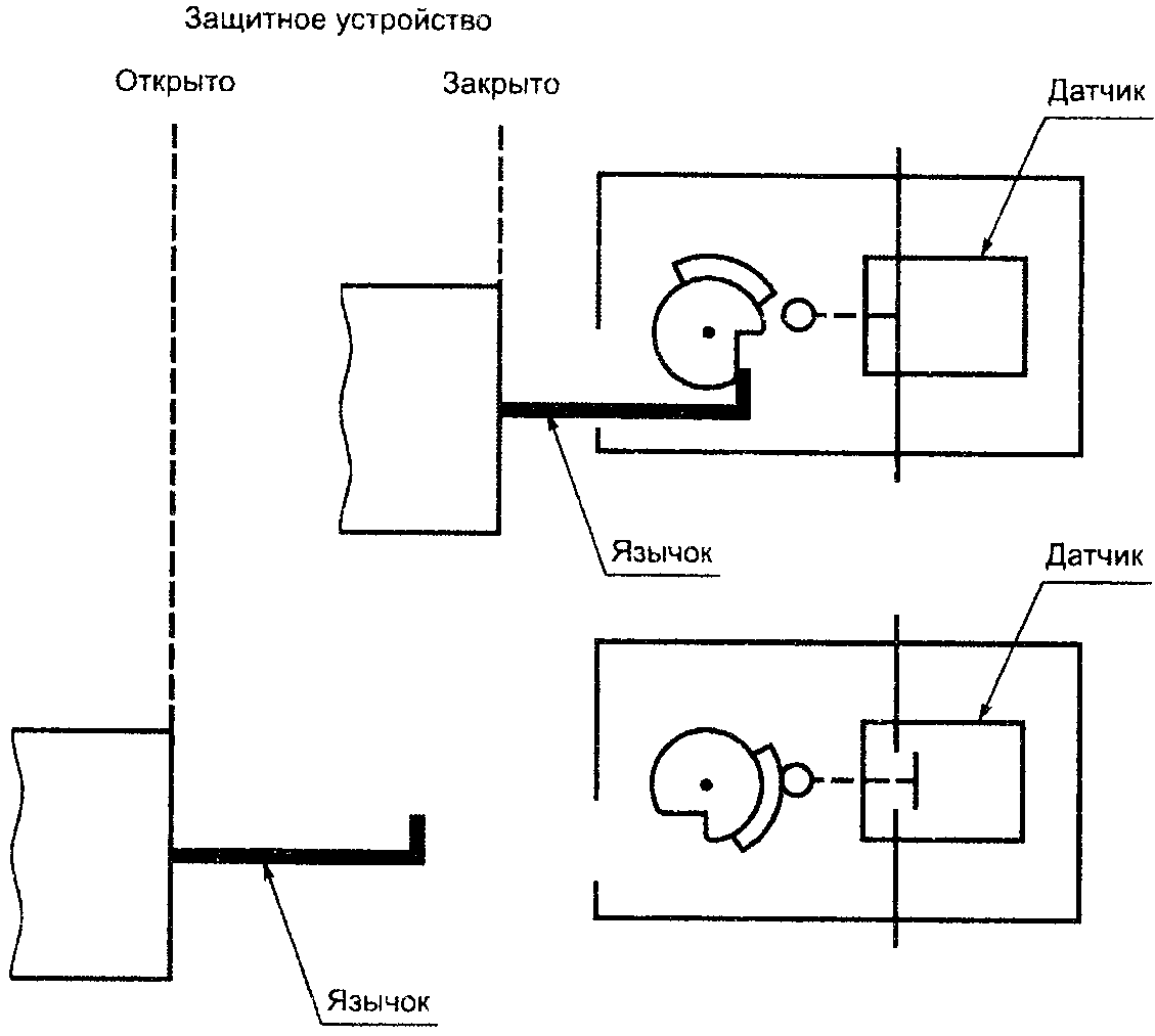 Примечание. Применение ограничивается очень простыми механизмами. Для того, чтобы сделать возможным открывание защитного устройства, может потребоваться ручное управление подвижным элементом.